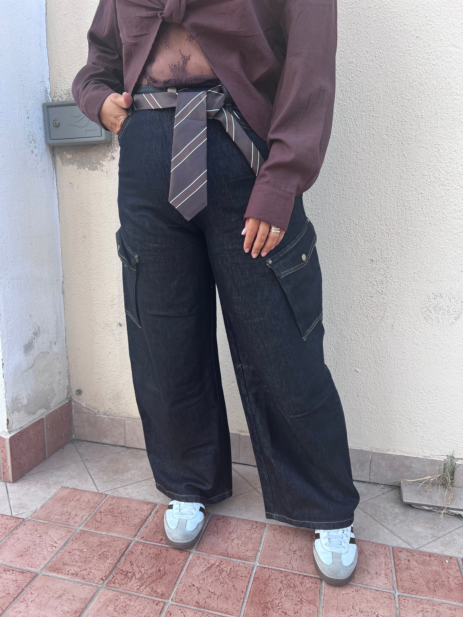 Jeans cargo cravatta